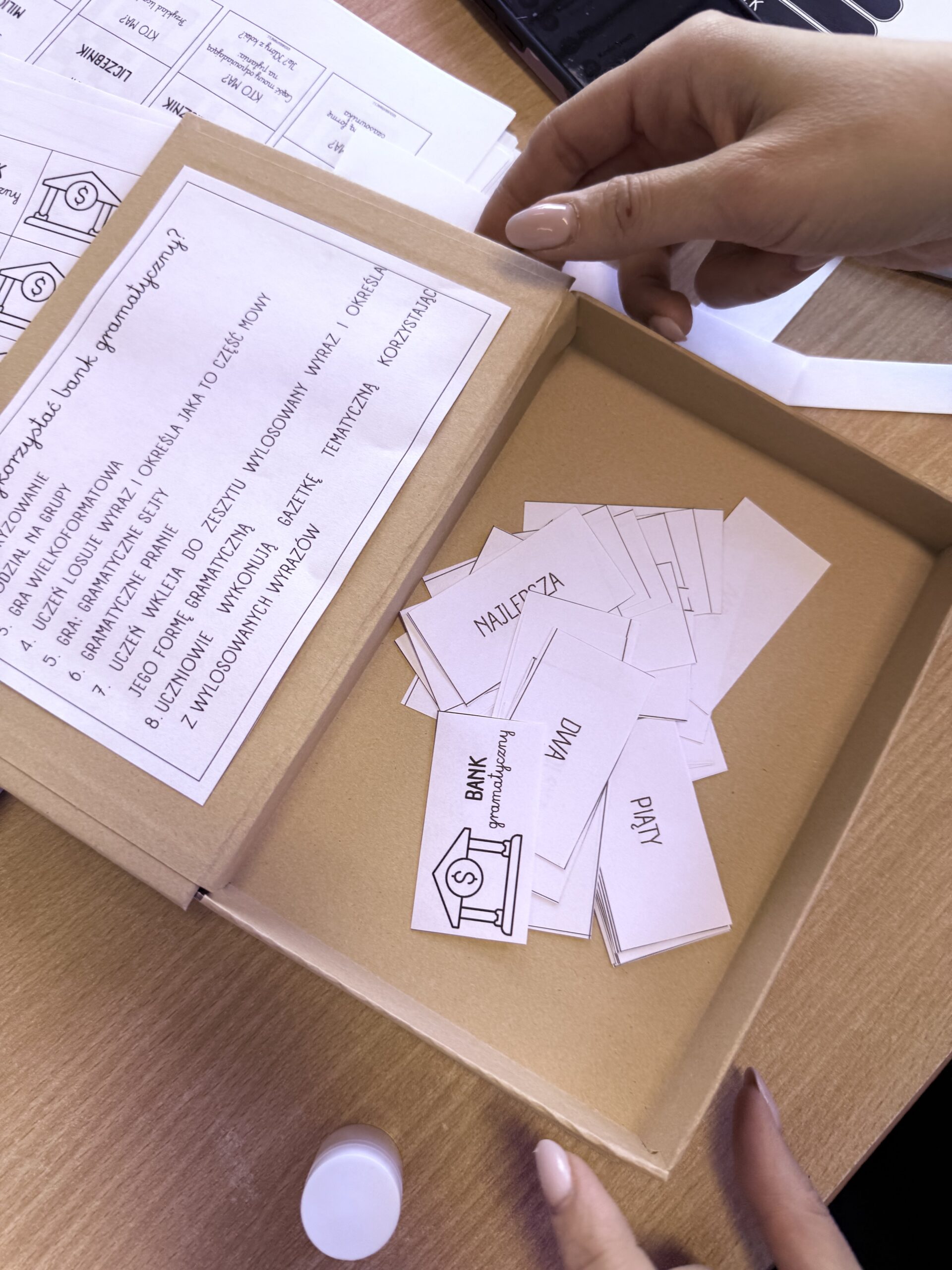 –TECZKI W WERSJI PAPIEROWEJ. W jednej teczce znajdziesz gramatyczne karty pracy do powielania, w drugiej zestaw gramatycznych gier i zabaw na zajęcia.